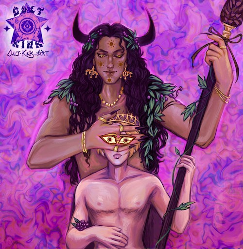 Hi, I'm Fig! I'm a detransitioned, nonbinary, queer woman in my 30s, who is devoted heart and soul to Dionysos-Zagreus. I am also devoted to Ariadne, Deo, and Kore-Persephone. I work closely with Archangel Raphael and Phanes. I studied cultural anthropology and (mostly) classical archaeology at Temple University and Colorado State University, and I'm interested in the ethnography of mysticism. I dream of becoming a children's librarian. While I'm open about being the current host of a DID system, my system information is private aside from my co-host Artemis (Arty), who may share his own experiences on my blog!
